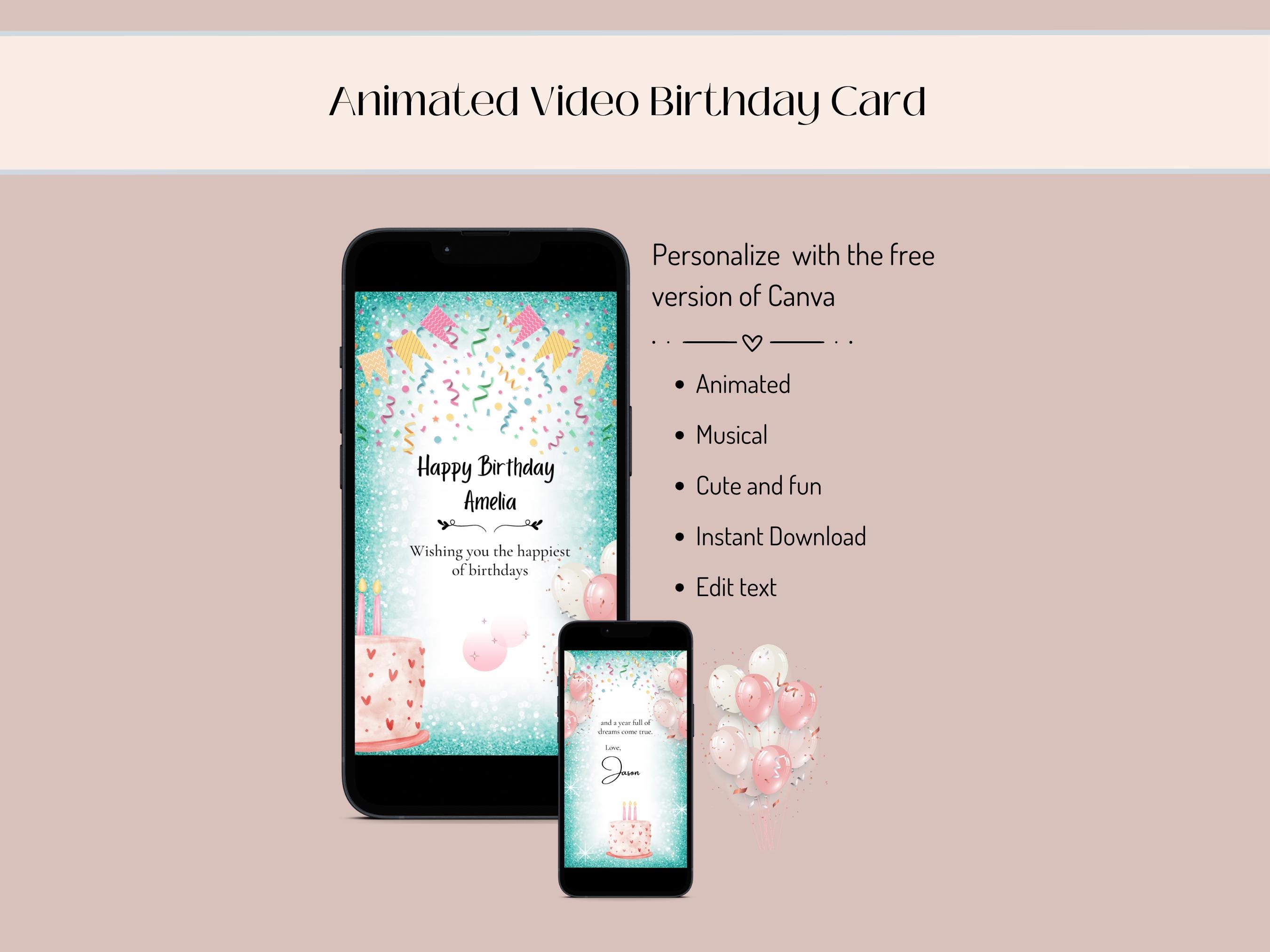Animated Birthday E-card Video: Mobile Canva Template (Digital Download)