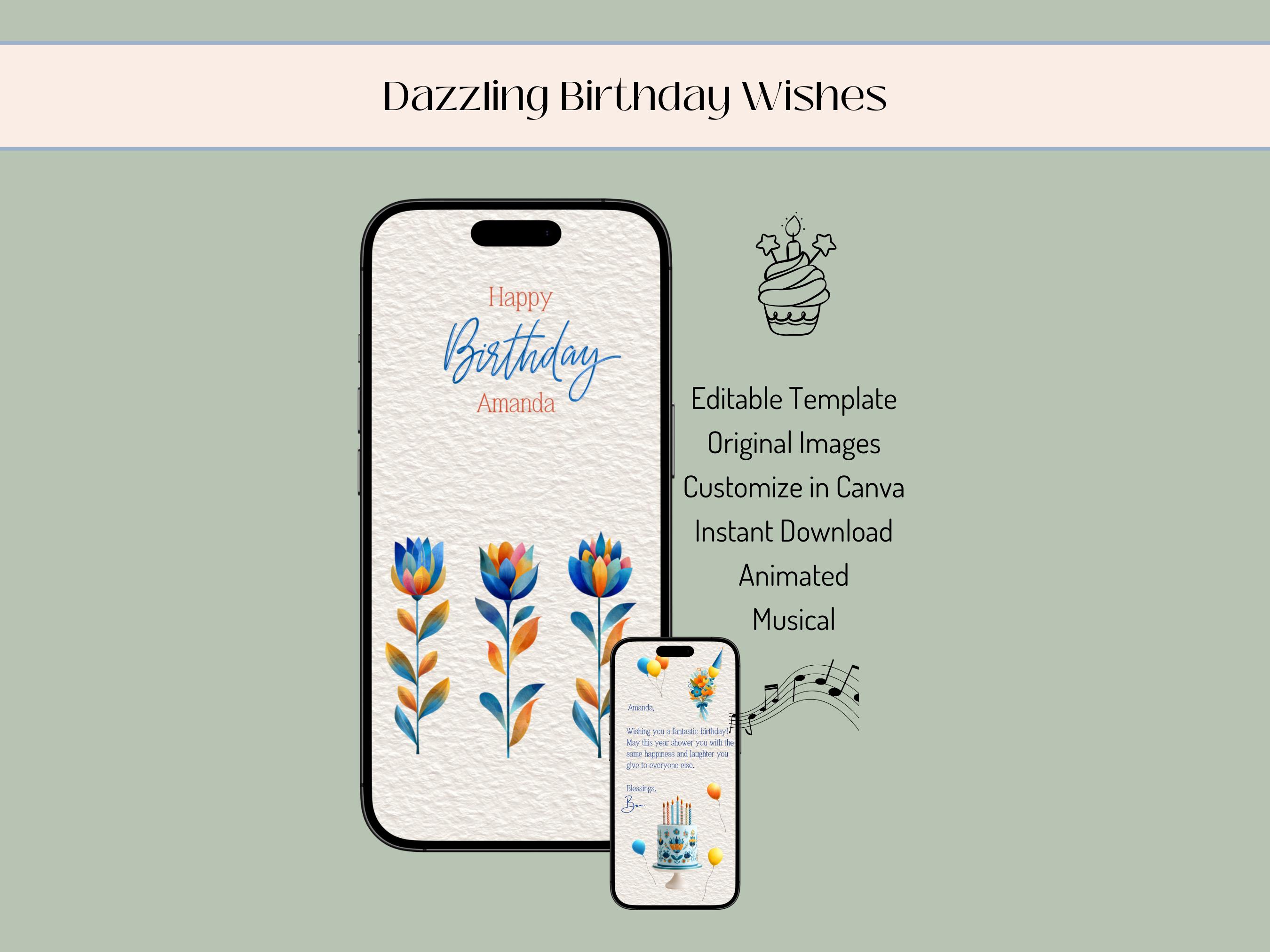 2. Mobile Phone Compatibility: Designed for mobile devices, this animated birthday card is suitable for smartphones, including iPhone and Android.