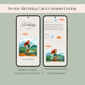 Please note that this is a digital product and no physical item will be shipped. After purchase you will receive a PDF document to download with several links. Two of them will open in Canva, or prompt you to sign in. If you don't have the Canva app, you can download it. One link opens a template for the card with music, the other for the card without music. There's another link to a help section in Canva for formatting text. You can preview your card by pressing the play button. You can either download the card as an MP4 file or use Canva to share it using your favorite messaging app.