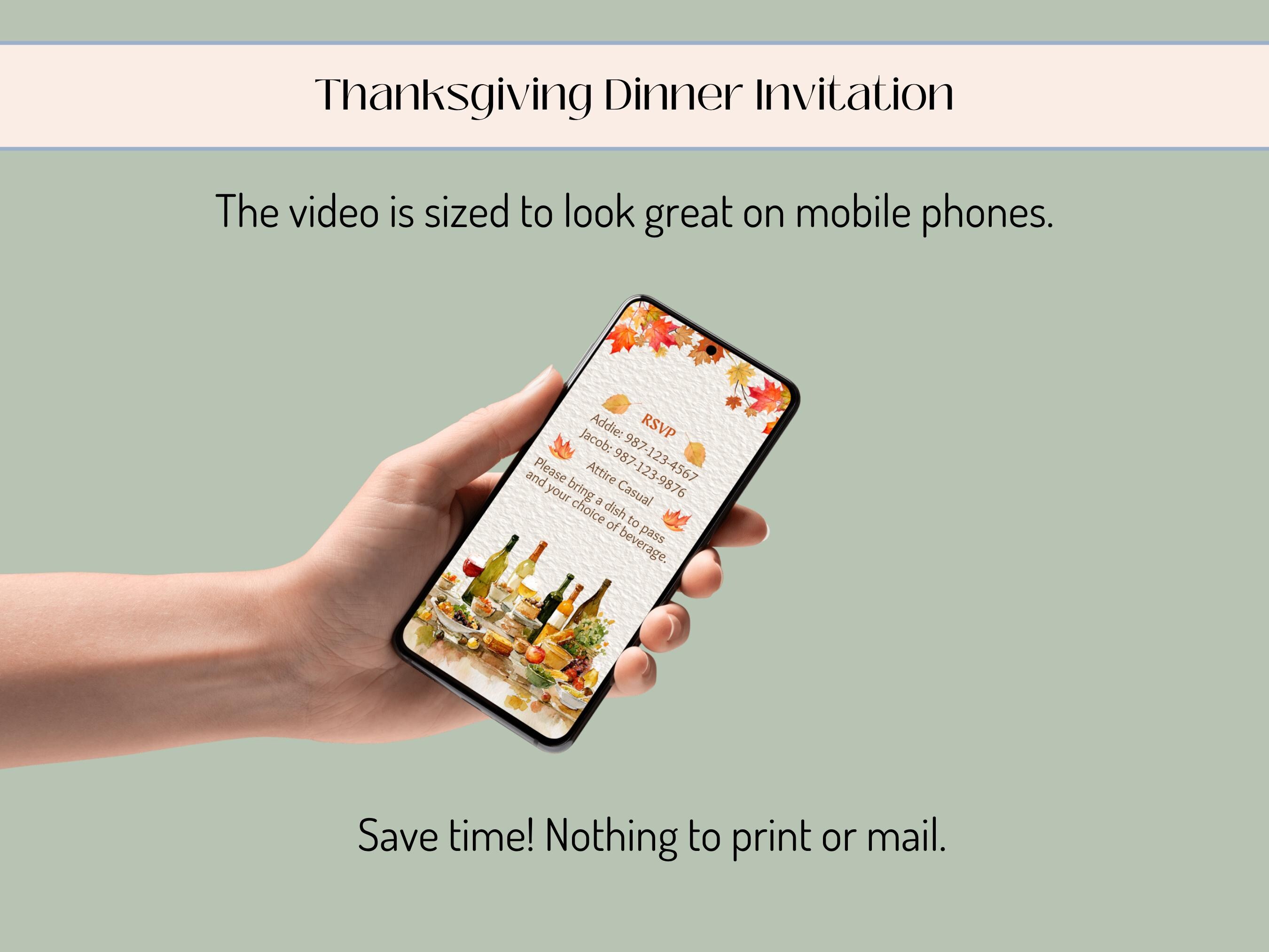 Thanksgiving Dinner Video Invitation, Animated Musical Evite, Fall Harvest, Editable Canva Template, Instant Download MP4