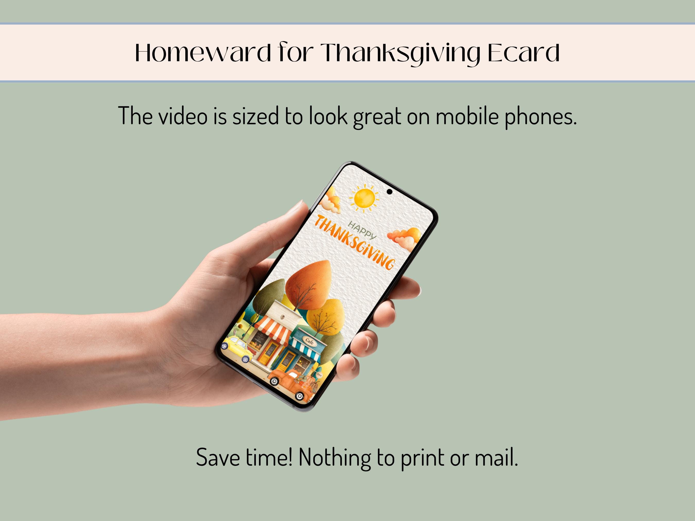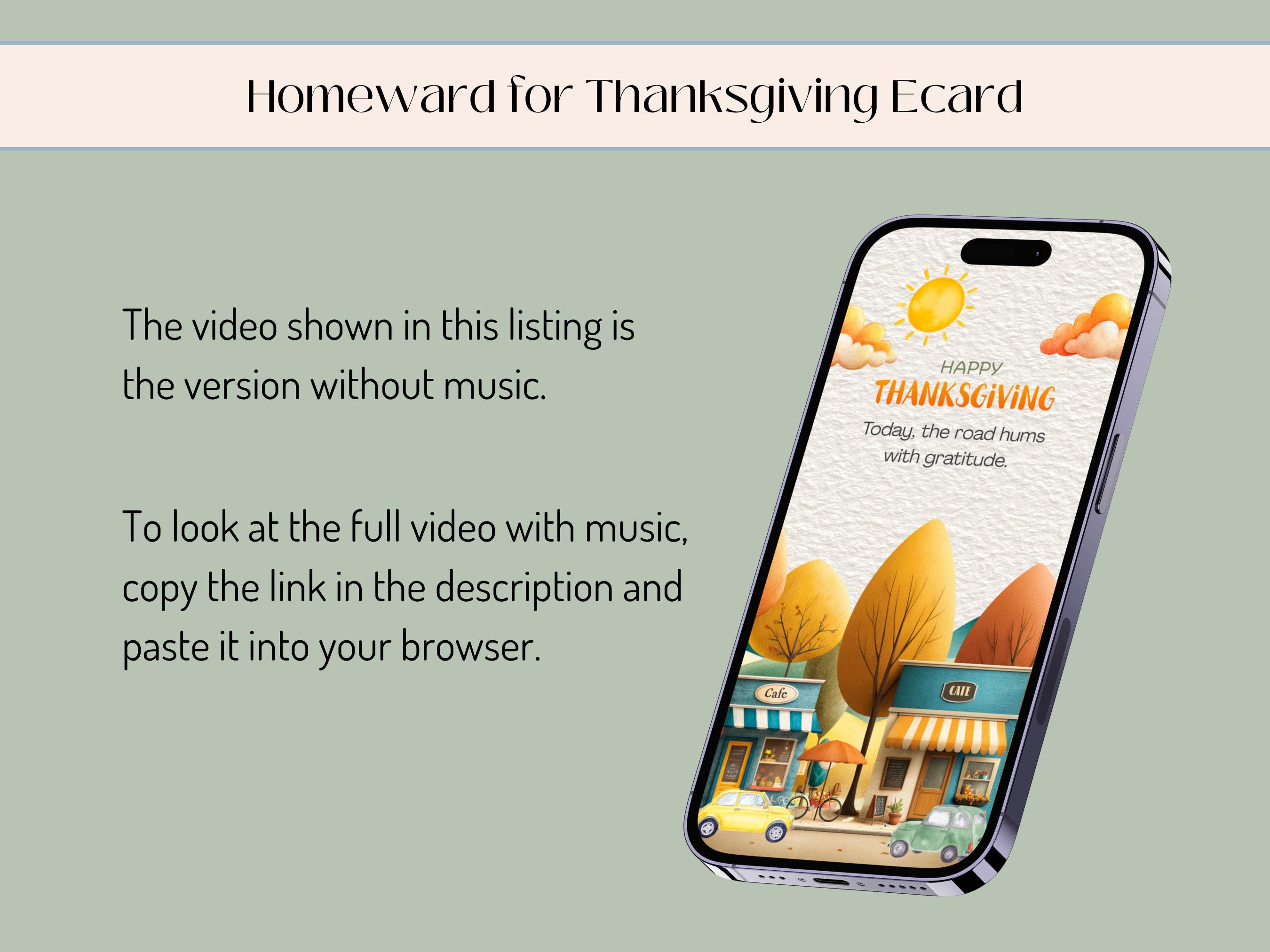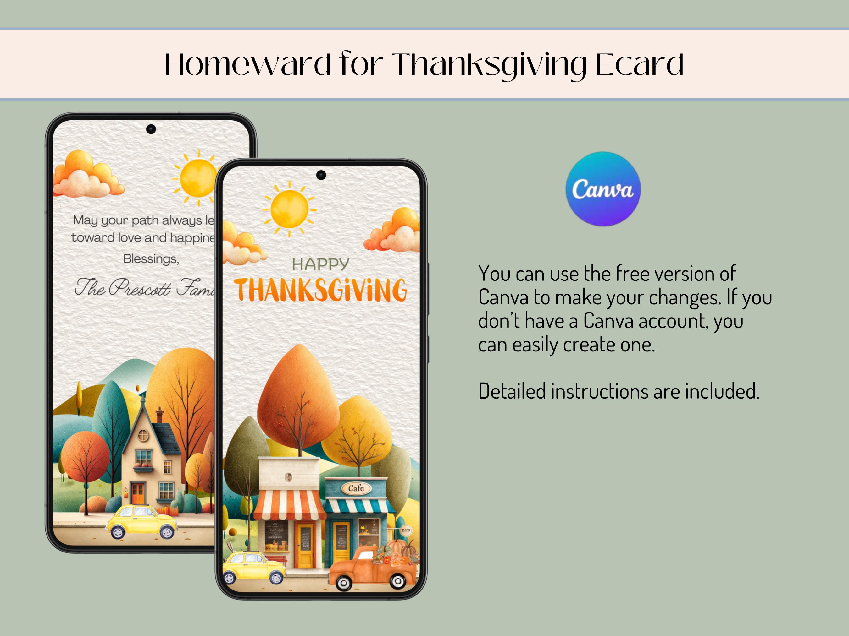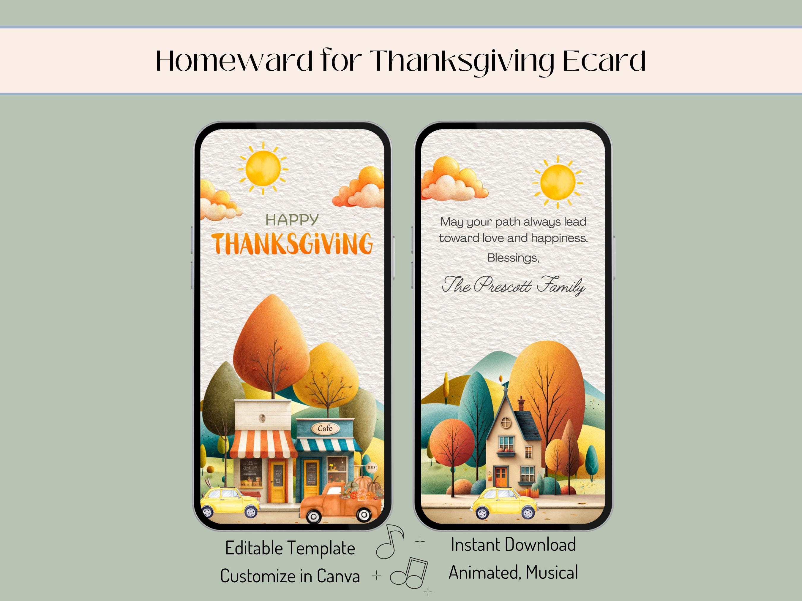 Thanksgiving Video Card, Homeward for Thanksgiving Animated Musical E-card, Fall Greeting, Editable Canva Template, Instant Download MP4
