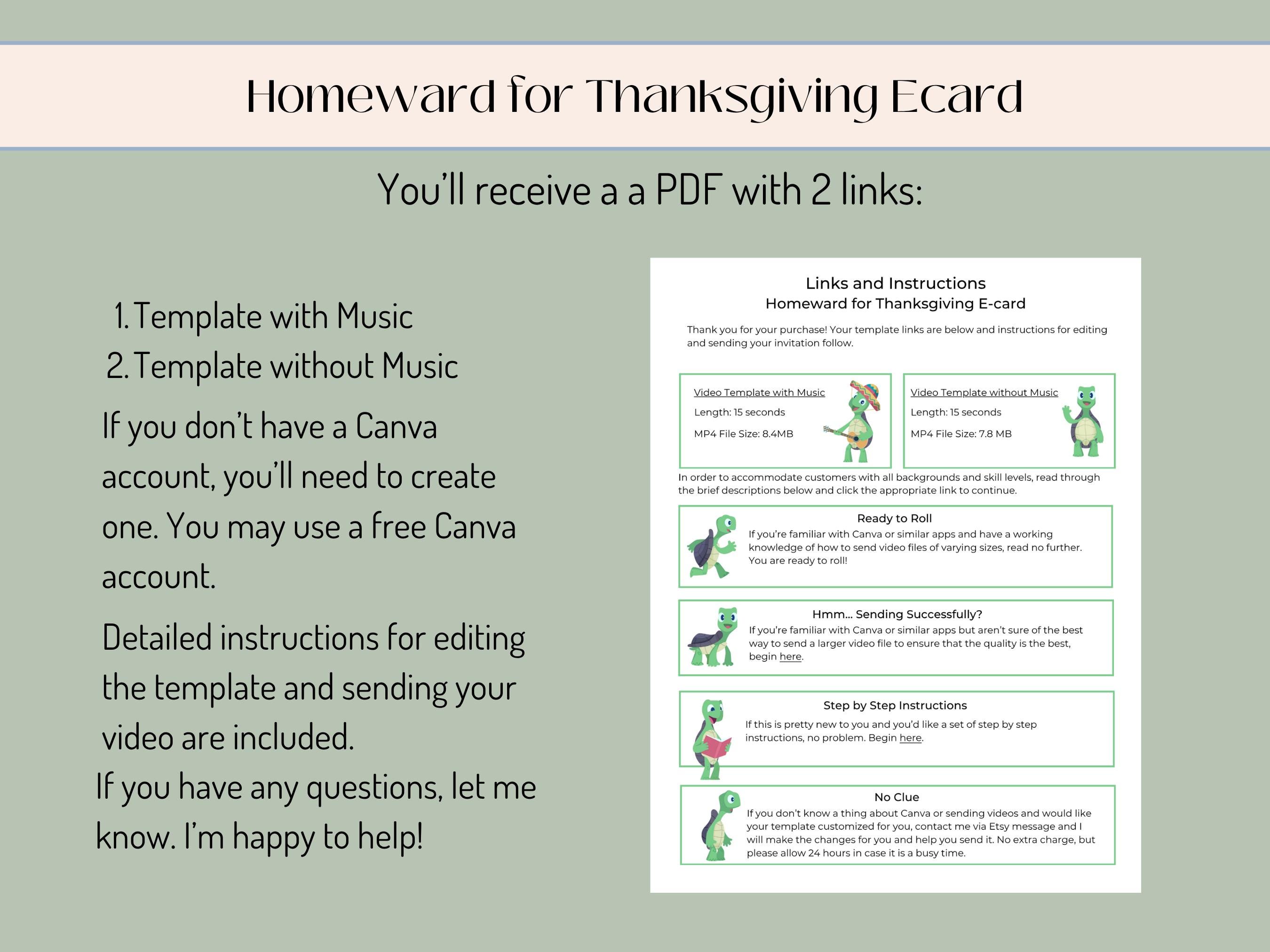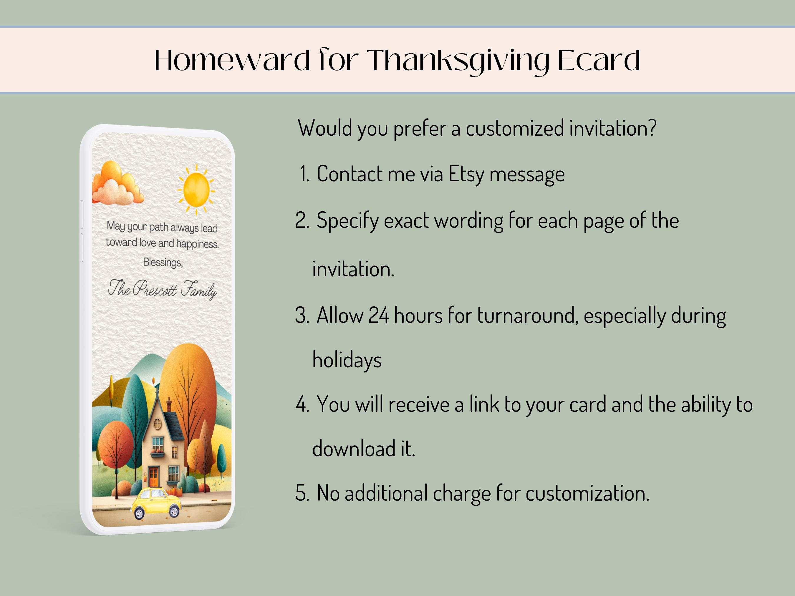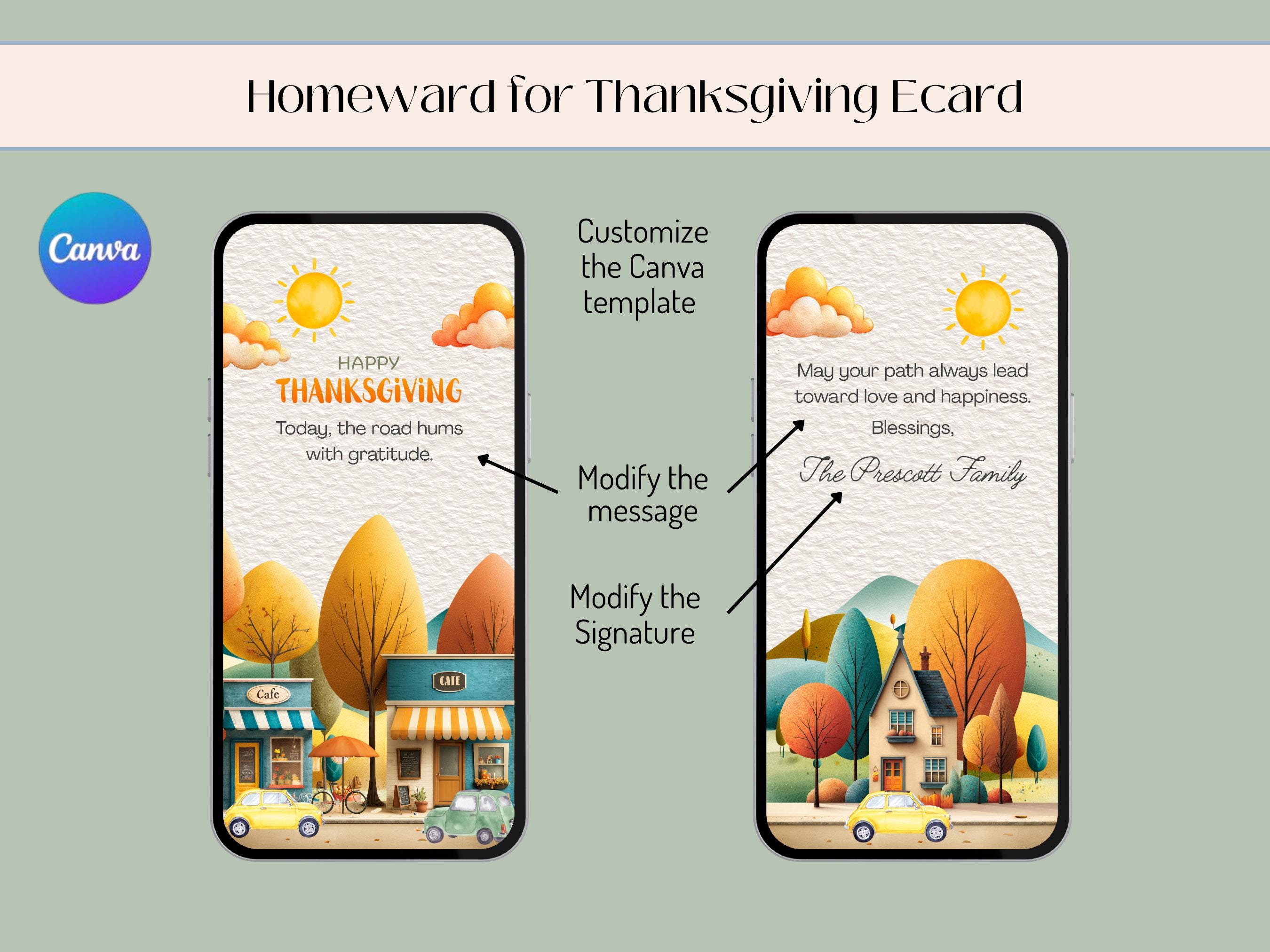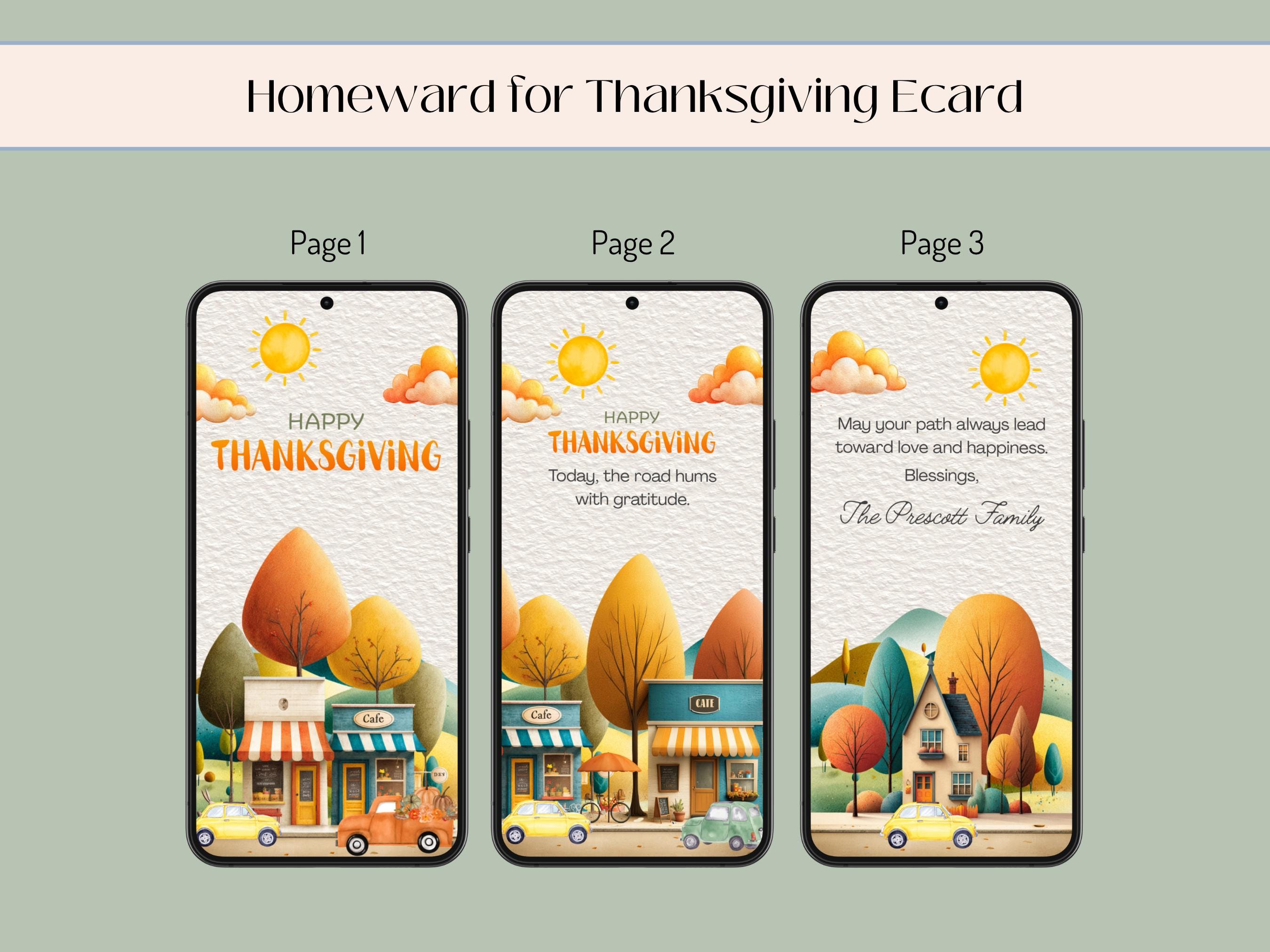 Thanksgiving Video Card, Homeward for Thanksgiving Animated Musical E-card, Fall Greeting, Editable Canva Template, Instant Download MP4