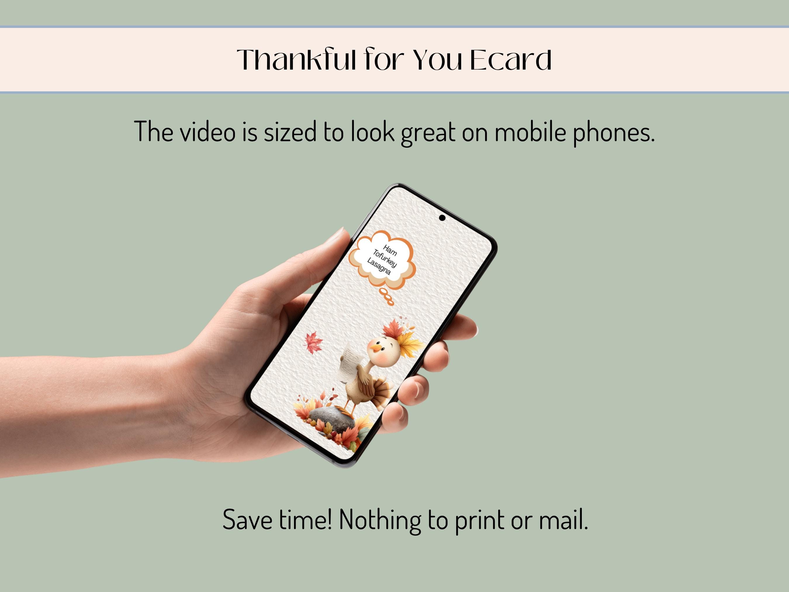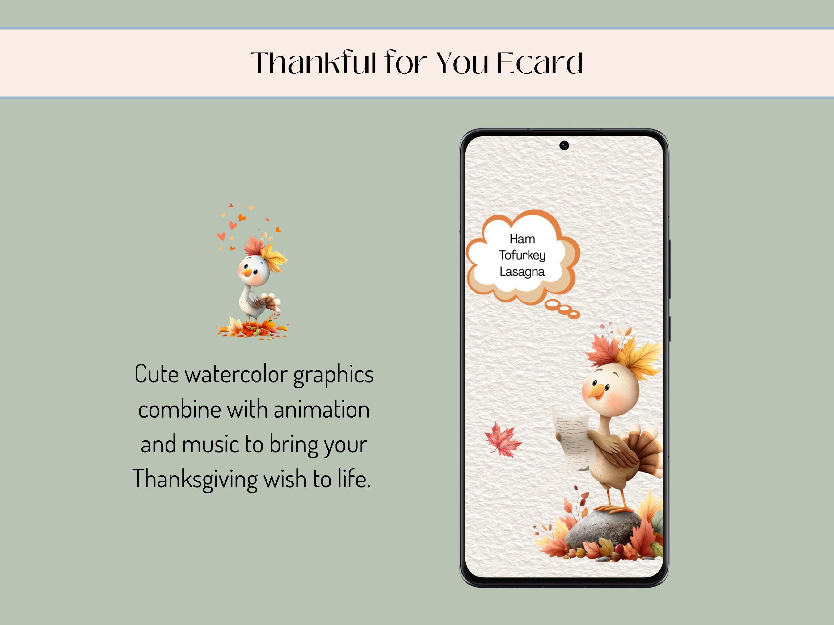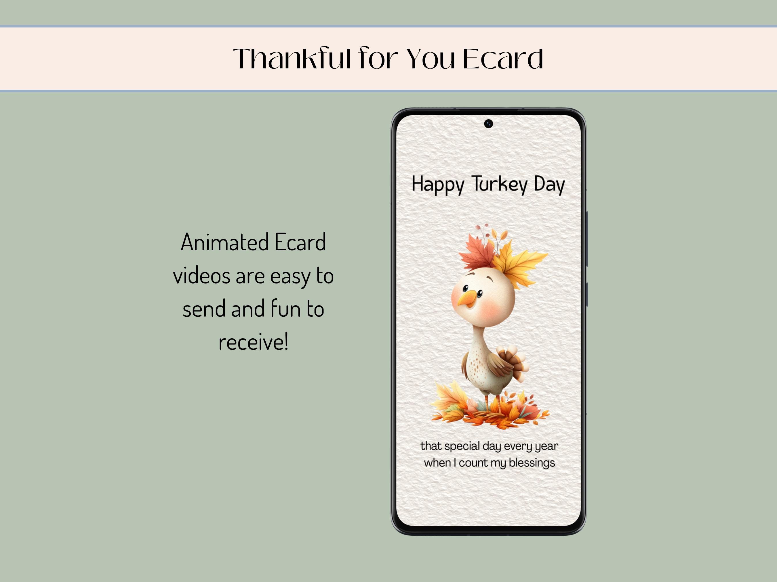 Share a laugh and your gratitude this Thanksgiving with this adorable animated musical video card! Featuring a charming young turkey who gets a little sidetracked counting his blessings - but you're definitely on the list!