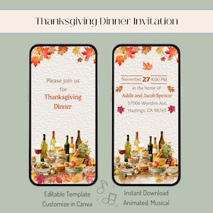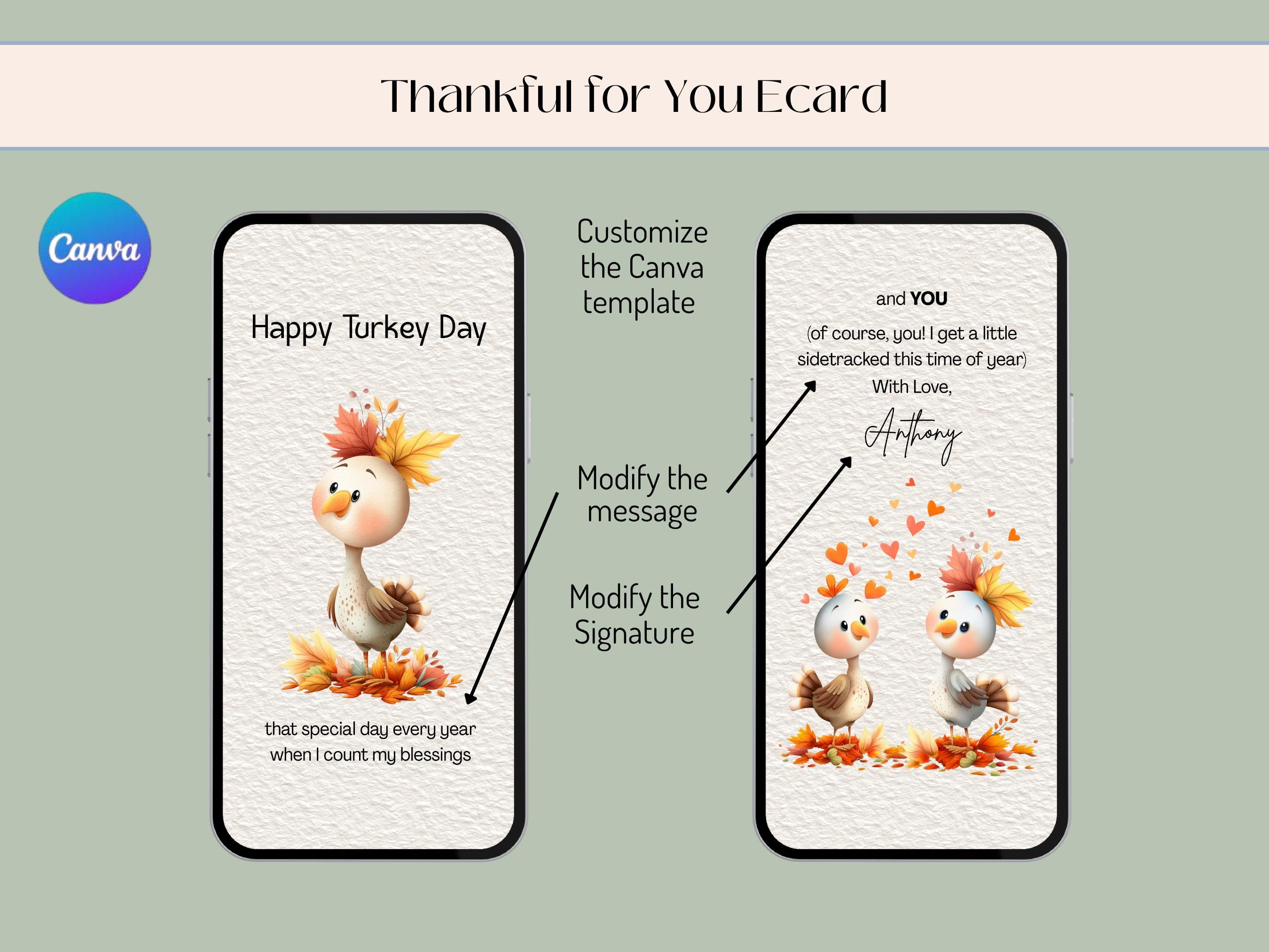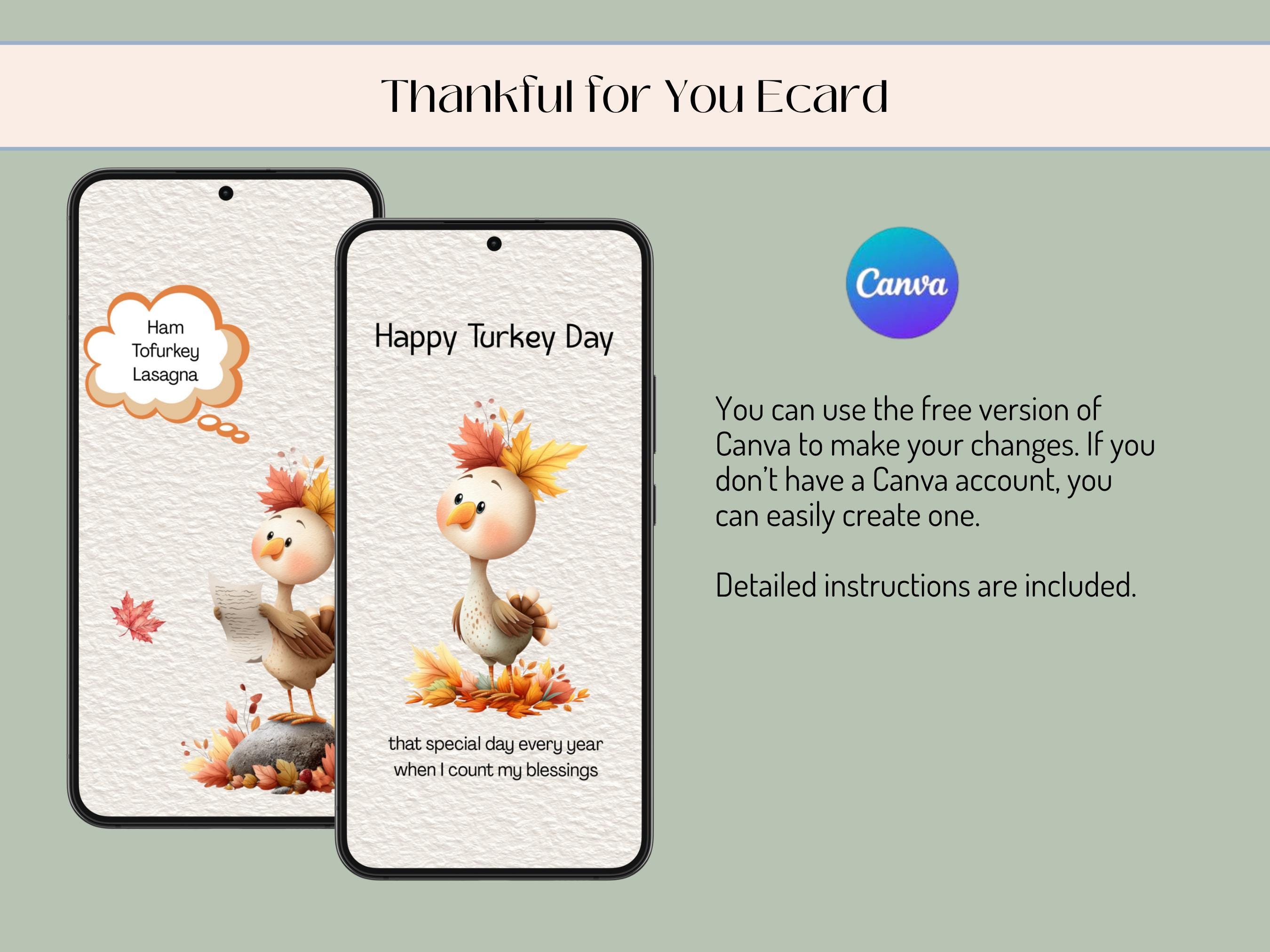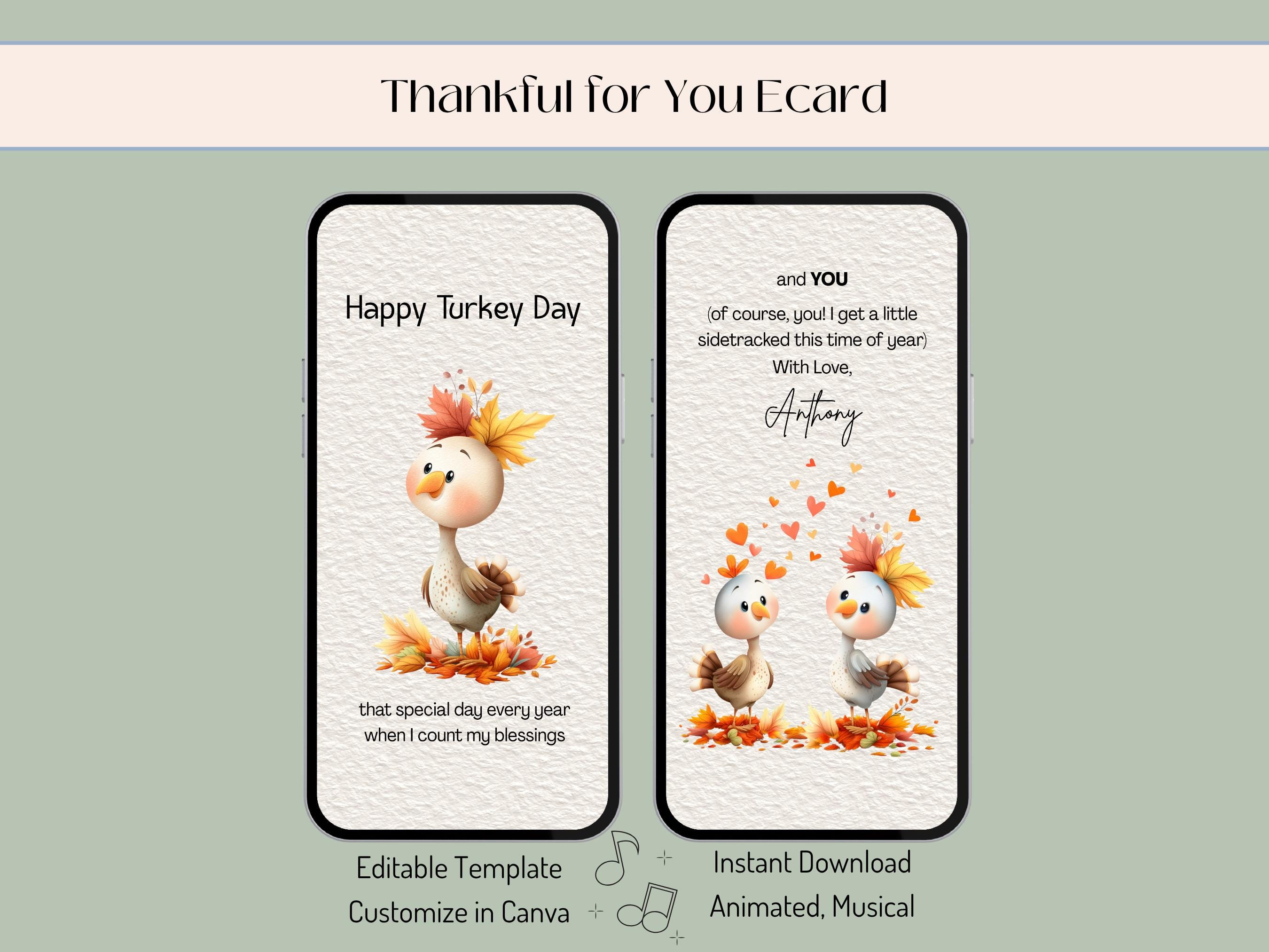 Thankful for You Thanksgiving Video Card, Funny Animated Musical E-card, Cute Turkey, Editable Canva Template, Instant Download MP4