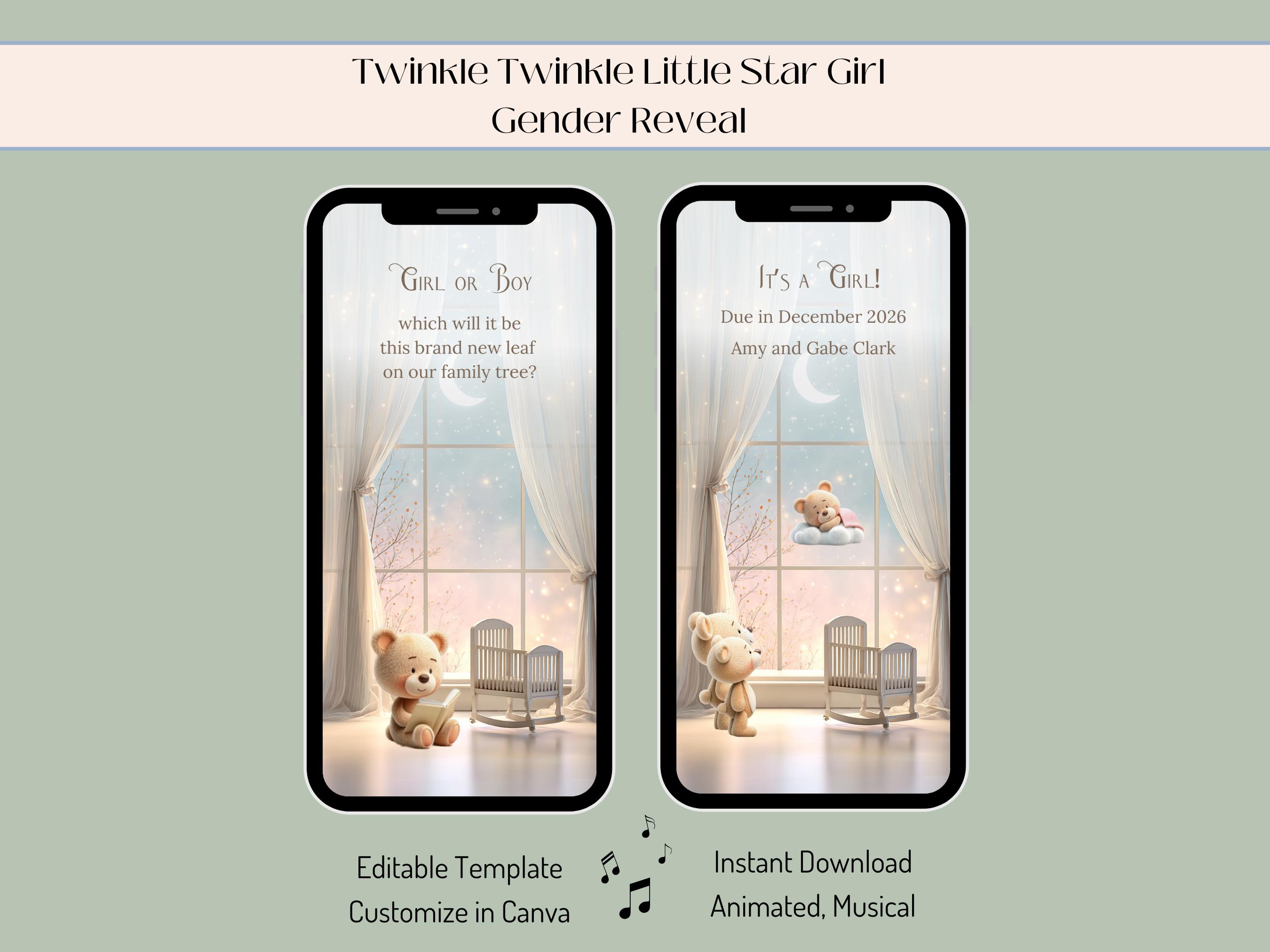 Twinkle Twinkle Little Star Gender Reveal Video, Digital Gender Reveal Announcement