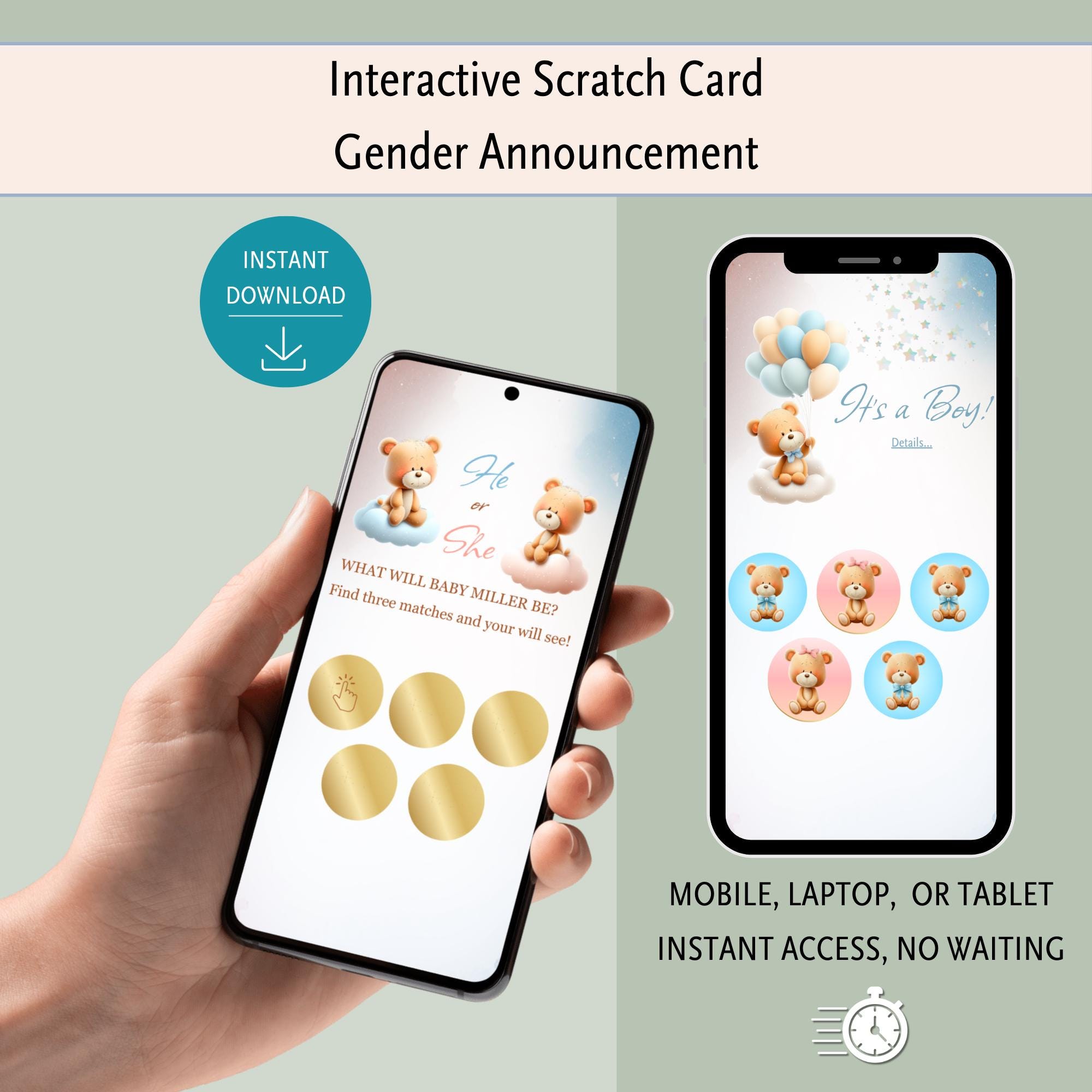 Boy Gender Reveal Digital Scratch Card Digital Announcement Instant Download | Email Text Social Media
